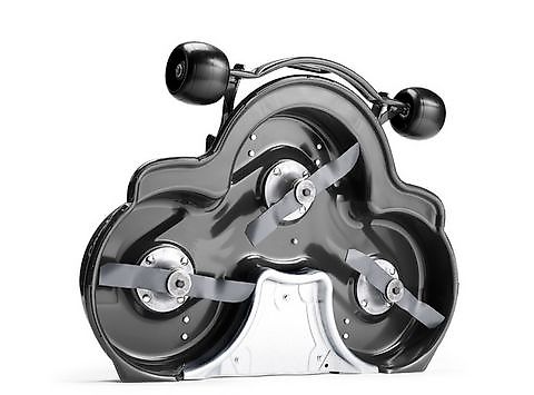 Mähdeck Combi 94. Die Kombischneidwerke vereinen zwei Mähmethoden in einem Deck: BioClip (Mulchen) und Heckauswurf.